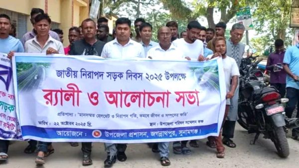জগন্নাথপুরে জাতীয় নিরাপদ সড়ক দিবস উপলক্ষে র্যালী ও আলোচনা সভা