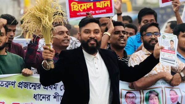 ঢাকা–১৯ আসনে বিএনপি প্রার্থী ডা. সালাউদ্দিন বাবু ভাইয়ের সমর্থনে লিফলেট বিতরণে মাঠে ছাত্রদল নেতা মোশারফ হিমেল